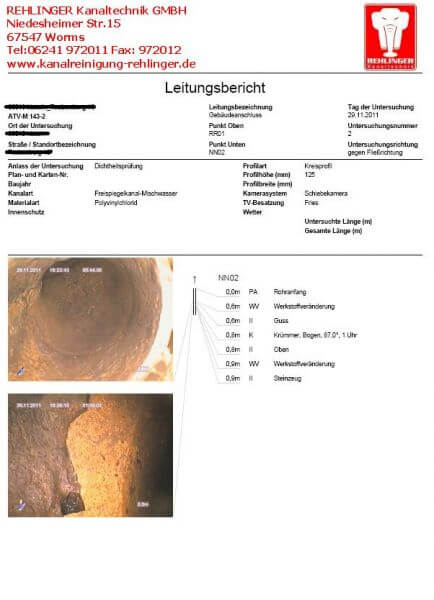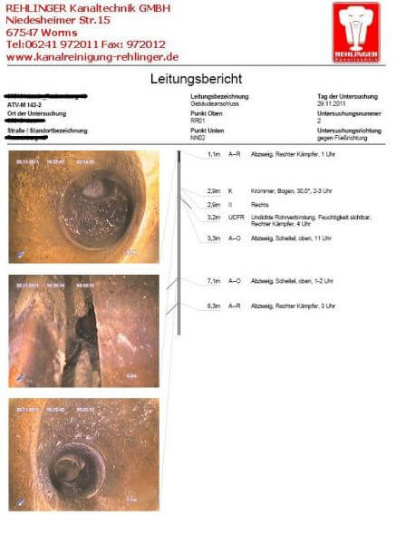 Wir können Ihnen das komplette Paket der Schadensfeststellung an Entwässerungsleitungen und Schachtbauwerken nach den ATV Richtlinien anbieten. Wir liefern ihnen die Inspektionsdaten in den unterschiedlichsten Formaten aus. Unsere Kameras sind mit modernster EDV- und Bedientechnik ausgestattet und werden von geschulten Fachmännern bedient. Dies ermöglicht uns, eine präzise Zustandserfassung und Bewertung des zu inspizierenden Kanals, in Rahmen einer Schadensfeststellung, einer Neubauabnahme, oder fĂ¼r die Abnahme einer KanalsanierungsmaĂŸnahme, zu erstellen.